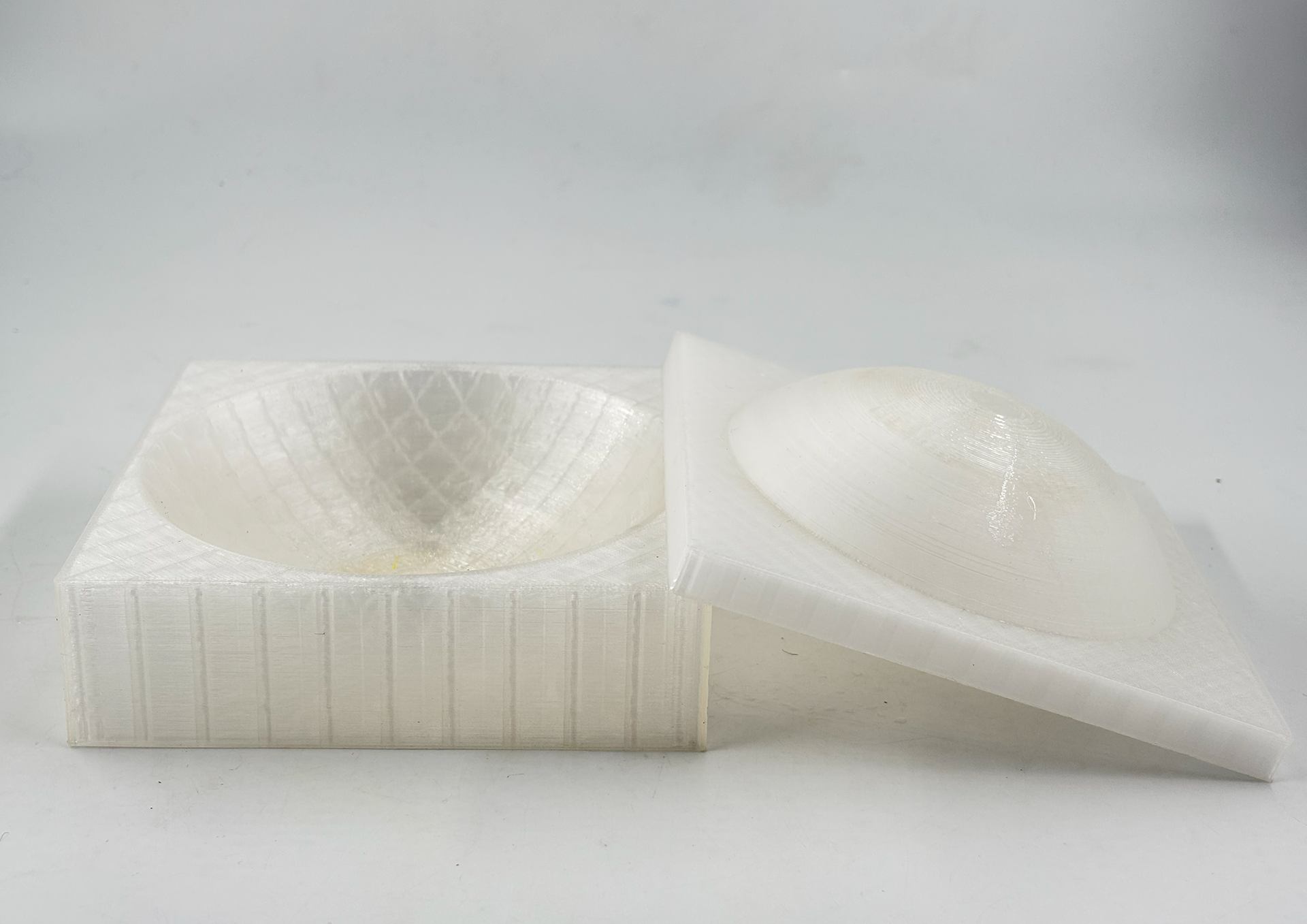 We explored how to mold alginate bioplastic using techniques like two-part, single-sided, and compression molding. Molds were created using 3D printing, laser cutting, and repurposed objects. Experiments focused on shaping the material with curves, textures, perforations, and organic forms to test its versatility and reduce shrinkage.