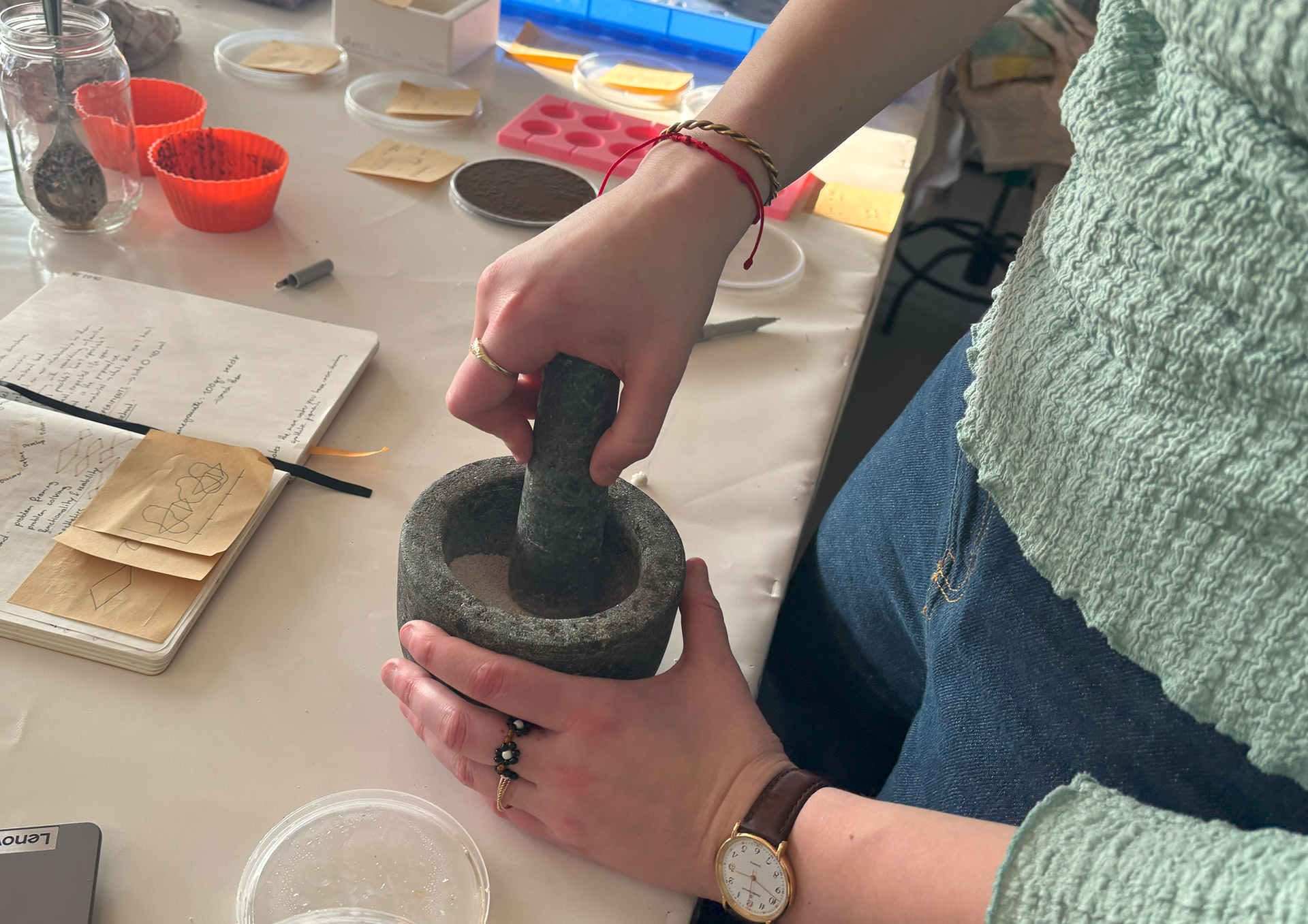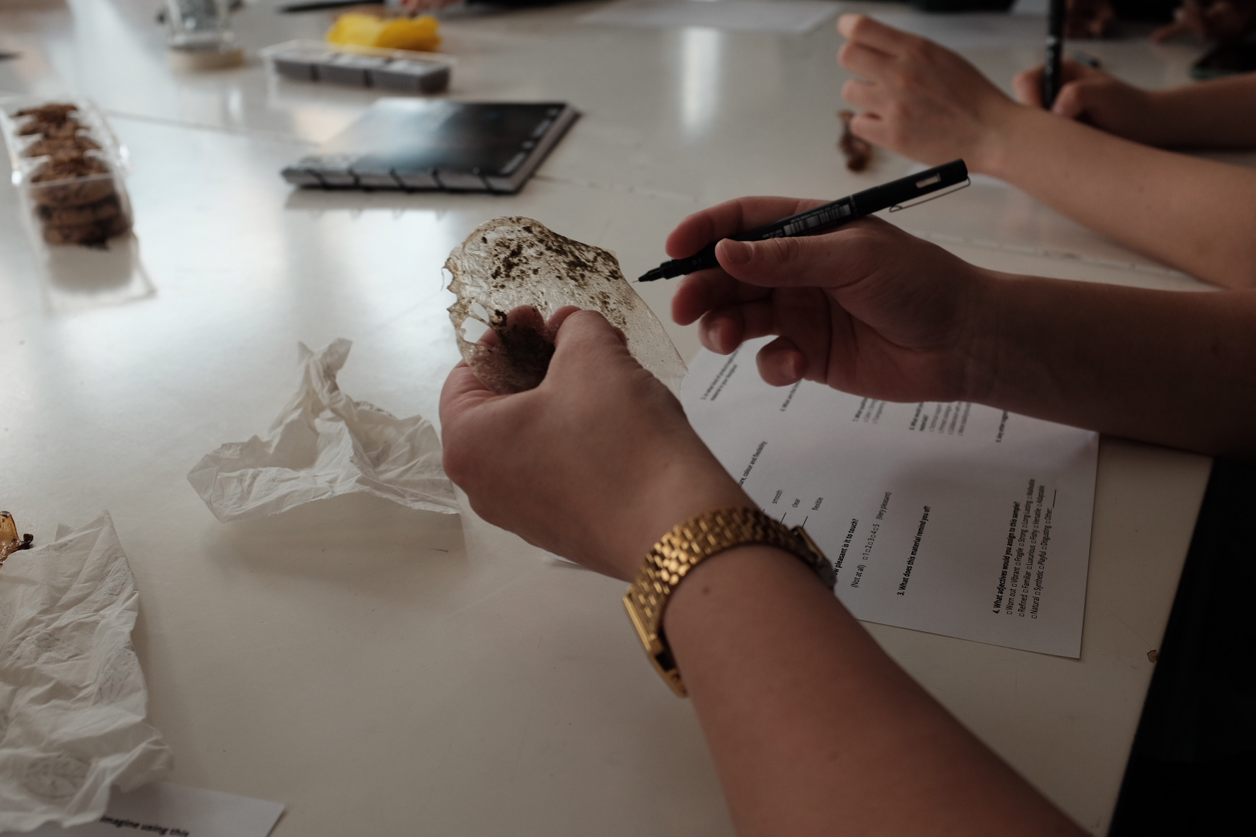 Through hands-on material tinkering, we explored bioplastics by experimenting with recipes using ingredients like corn starch, gelatin, agar-agar, and alginate.